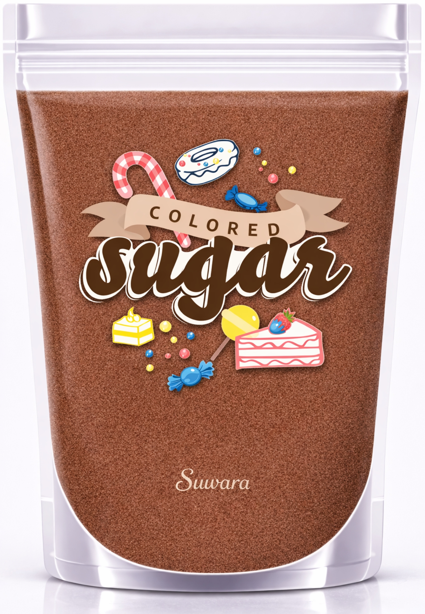 SUVARA Farbzucker Schokobraun 500g – hochwertiger Dekorzucker für Candy Bar, Backdeko und kreative Dessertgestaltung.